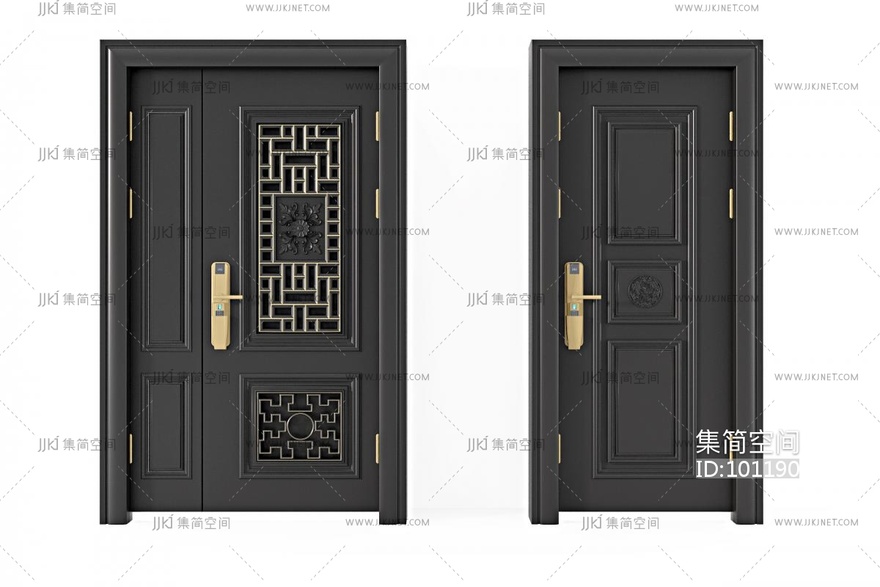 新中式单开门入户门_子母防盗门3D模型3d模型下载