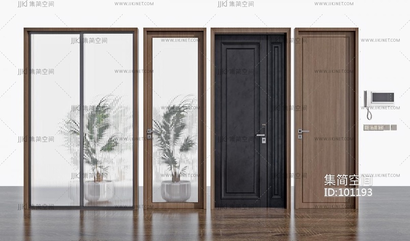 现代平开门,单开门,子母门,木门 3d模型下载 [模型ID:101193]
