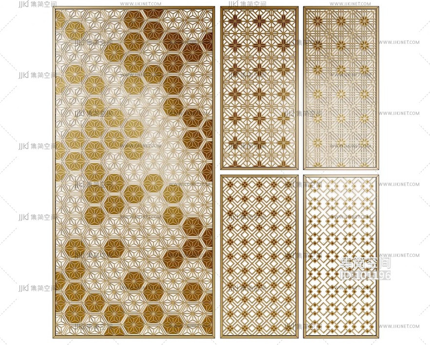 新中式东南亚金属,花格,屏风隔断组合 3d模型下载 [模型ID:101196]