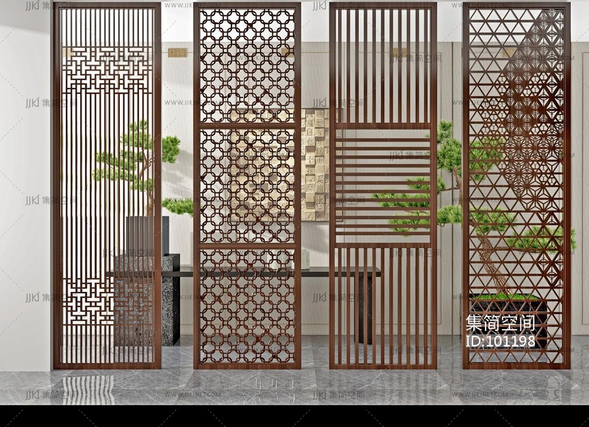 新中式东南亚泰式隔断镂空雕花,屏风 3d模型下载 [模型ID:101198]