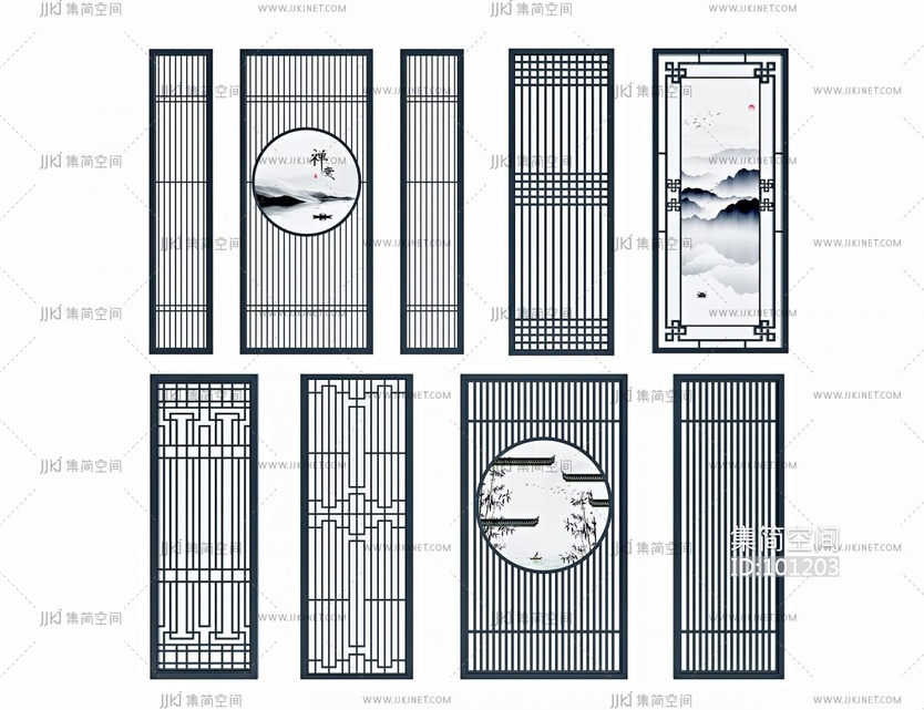 新中式日式屏风隔断,花格 3d模型下载 [模型ID:101203]