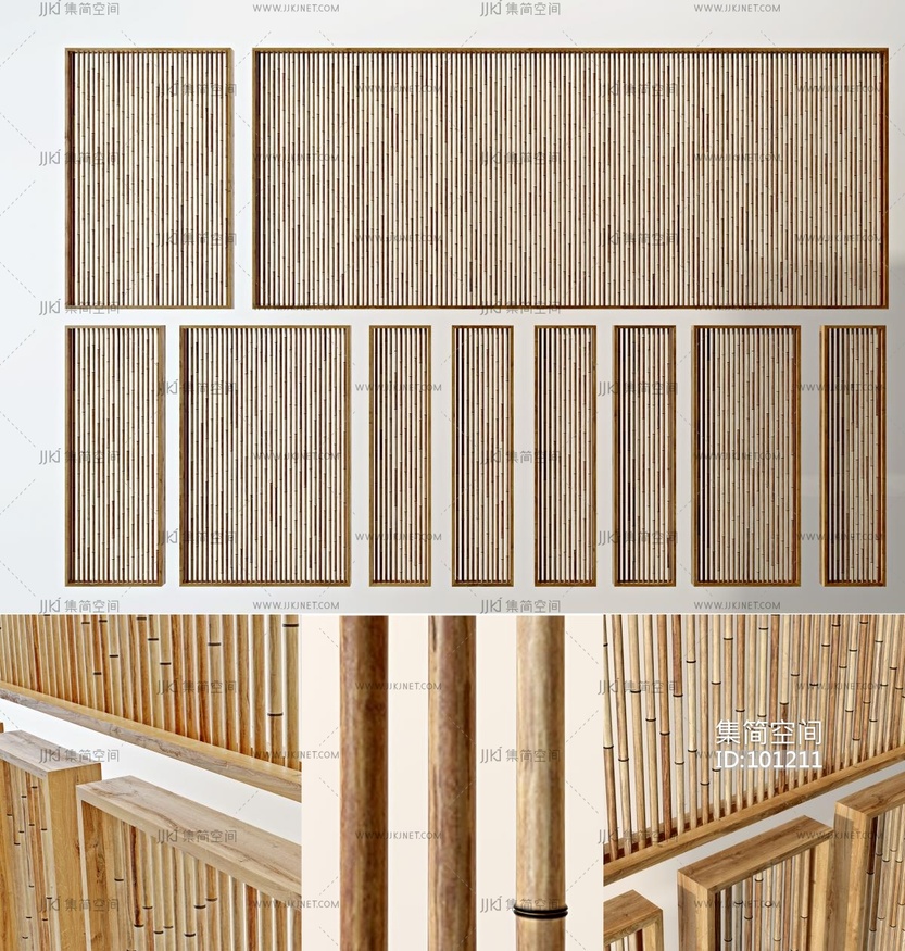 现代竹子,竹竿,屏风装饰 隔断装饰墙 3d模型下载 [模型ID:101211]