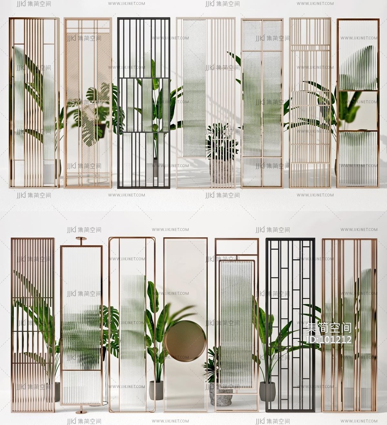 现代玻璃金属屏风隔断 3d模型下载 [模型ID:101212]