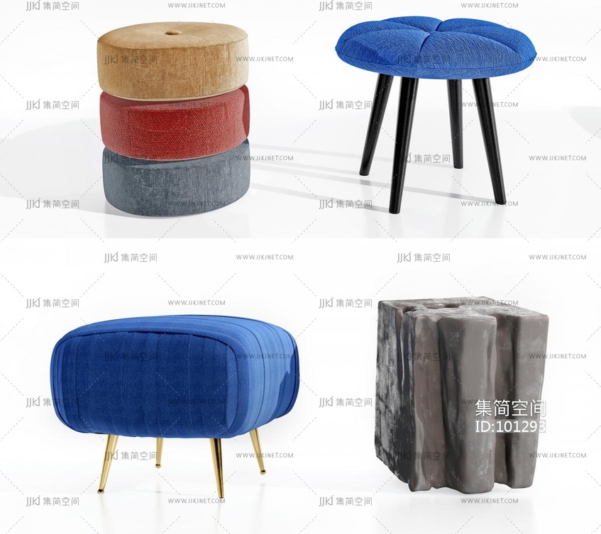 现代凳子组合 3d模型下载 [模型ID:101293]
