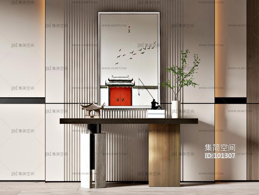 美式玄关柜摆台装饰画3D模型下载3d模型下载