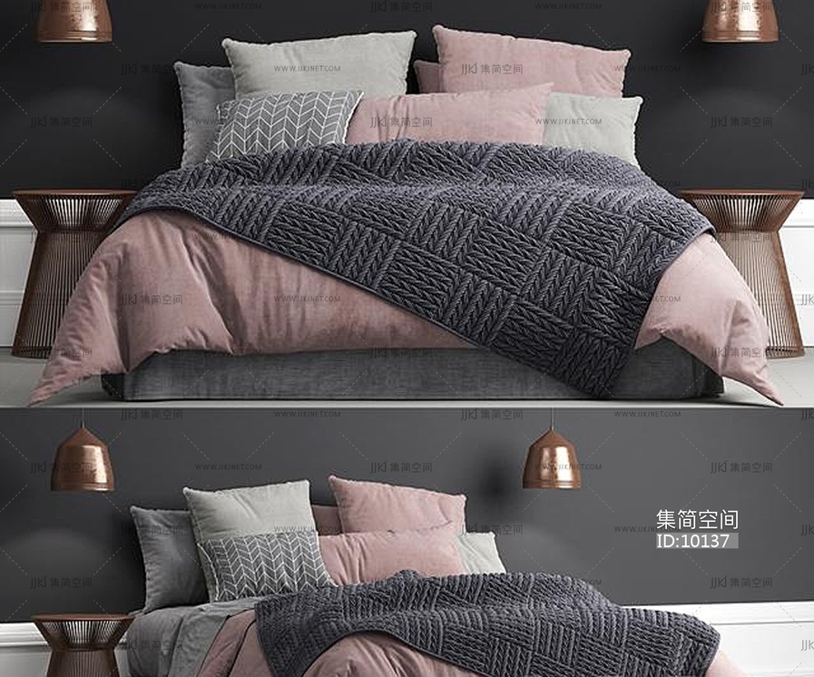 03-现代风格床模型组合国外 3d模型下载 [模型ID:10137]