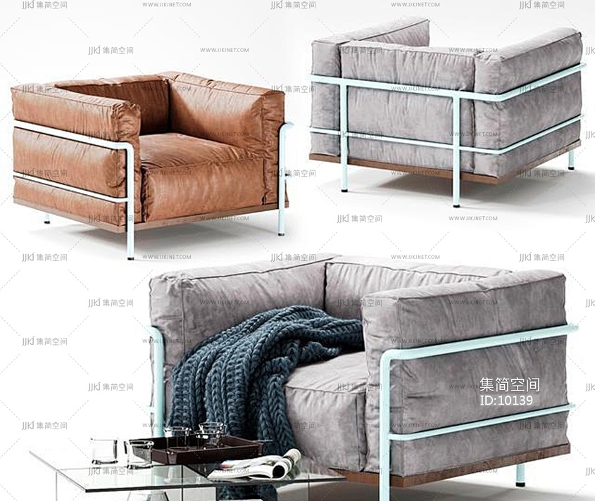 06-现代单人沙发组合国外 3d模型下载 [模型ID:10139]
