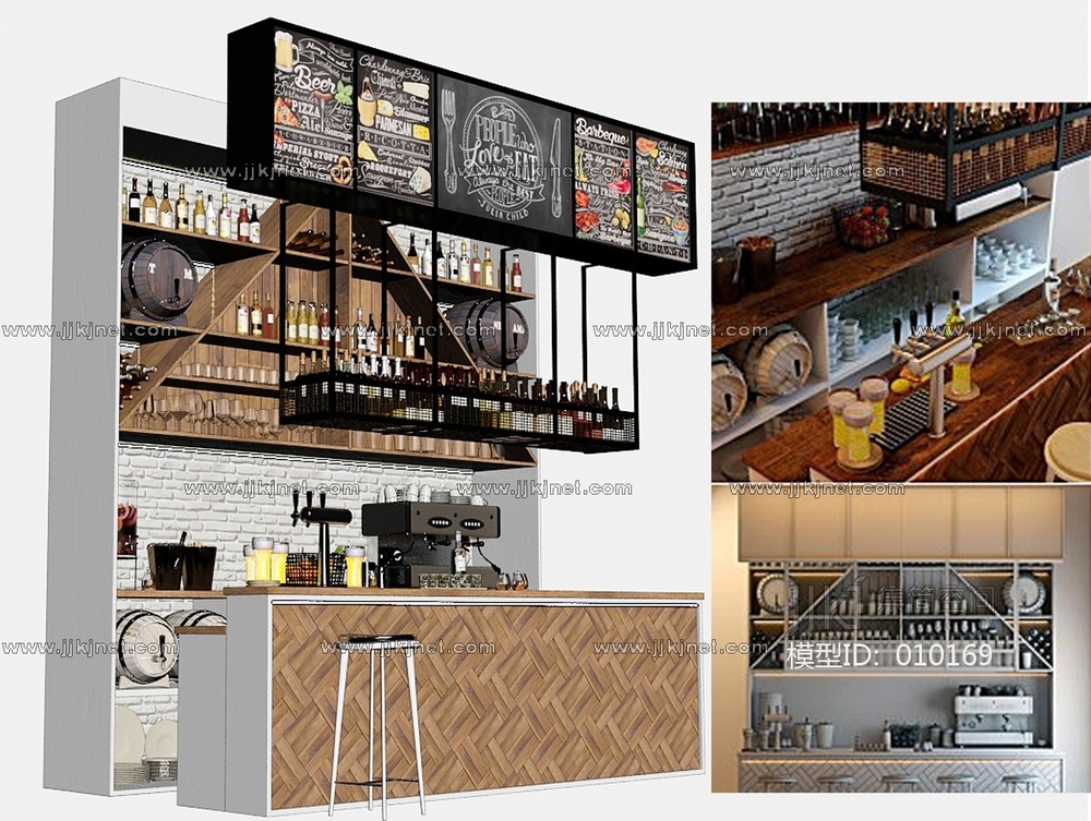 酒吧吧台酒瓶模型组合国外咖啡机 3d模型下载 [模型ID:10169]