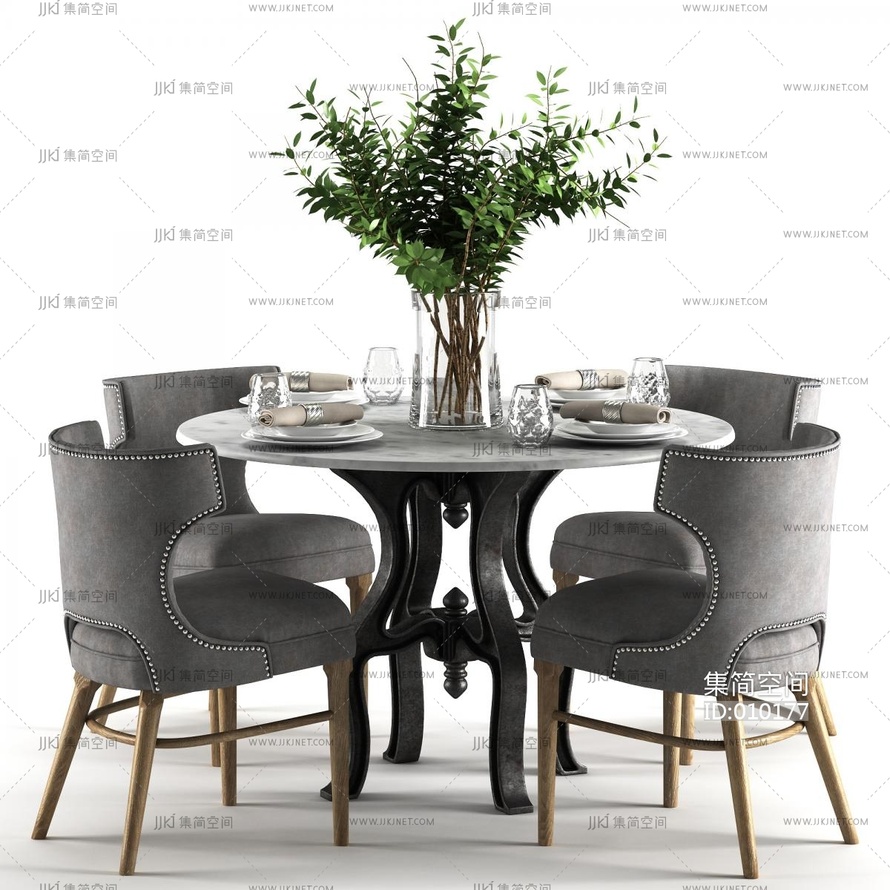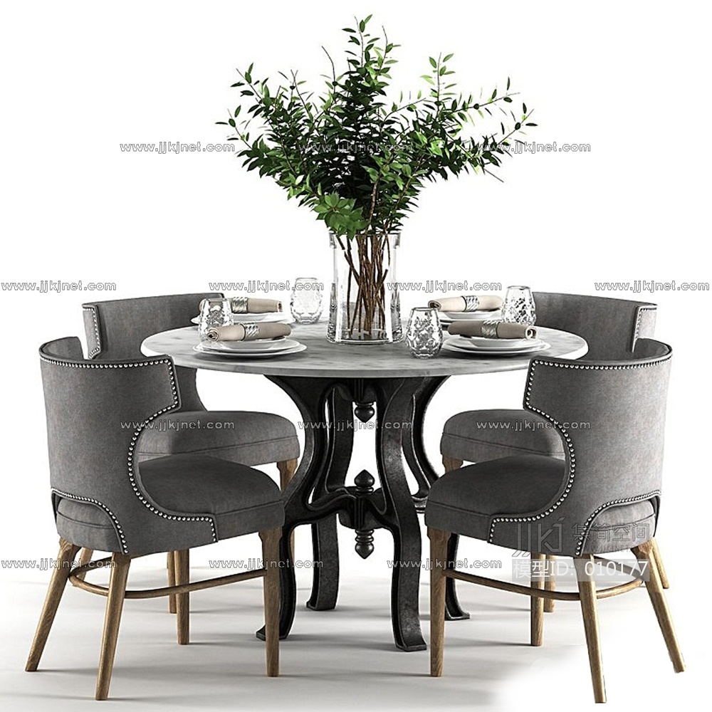 现代简欧式圆形餐桌椅,美式餐桌椅 3d模型下载 [模型ID:10177]