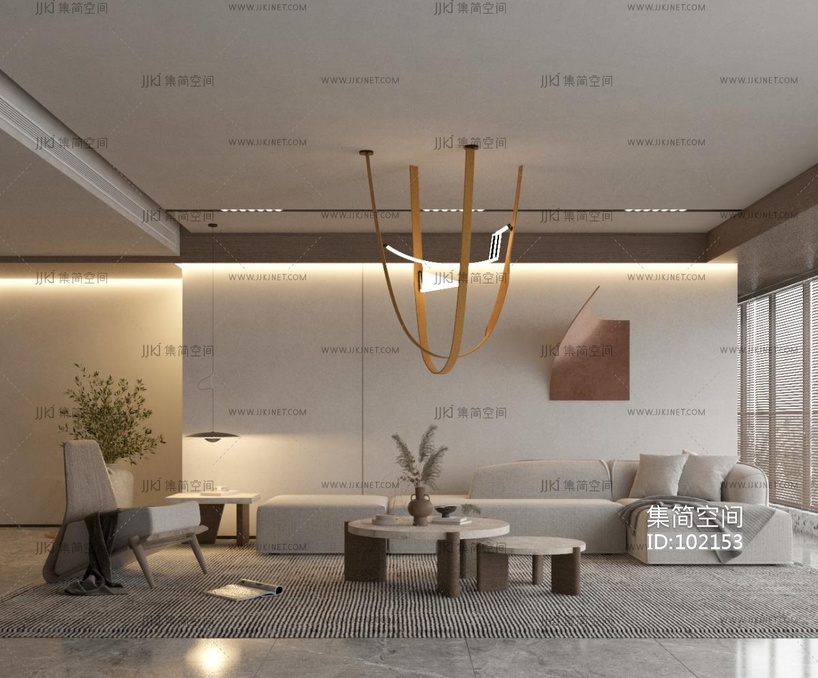 中古风客厅,美式客厅,圆形茶几,装饰画,移动电视,3d模型下载