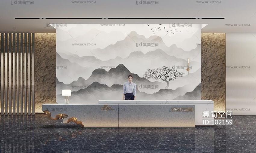新中式售楼处前厅前台, 3d模型下载 [模型ID:102159]