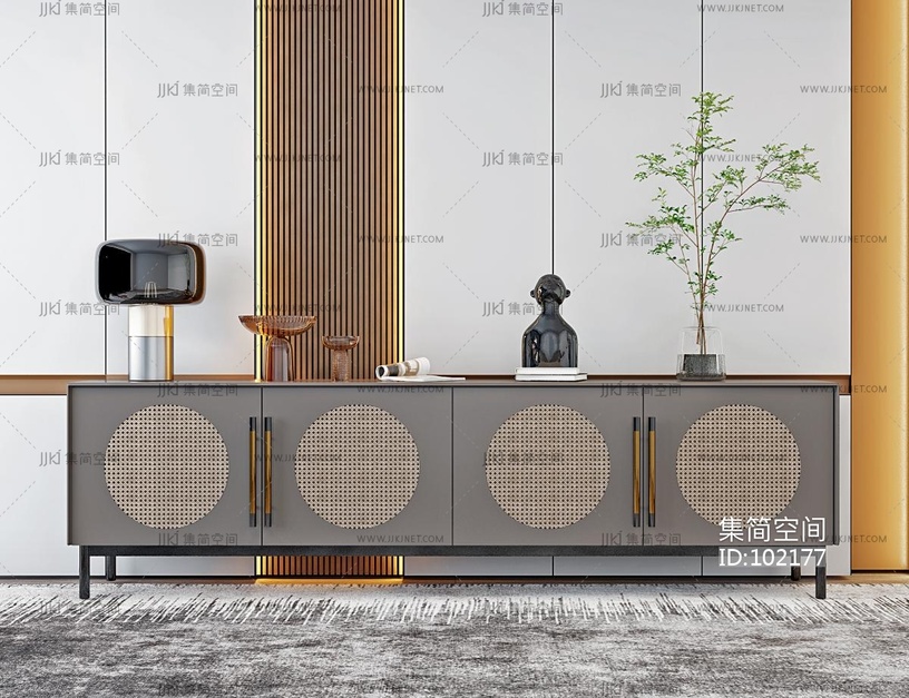 新中式电视柜, 3d模型下载 [模型ID:102177]
