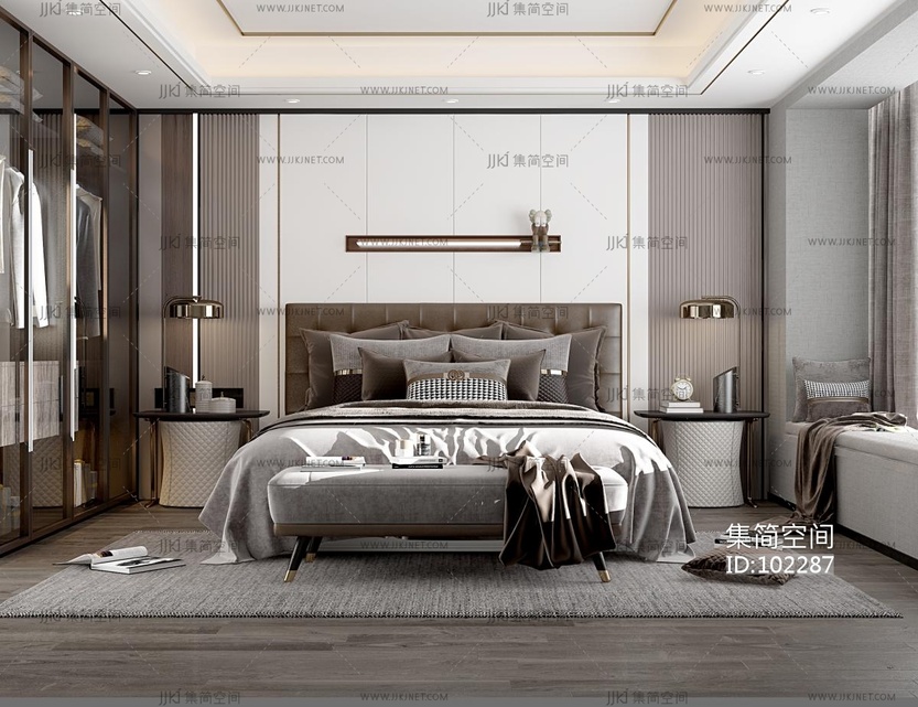 现代轻奢卧室 3d模型下载 [模型ID:102287]