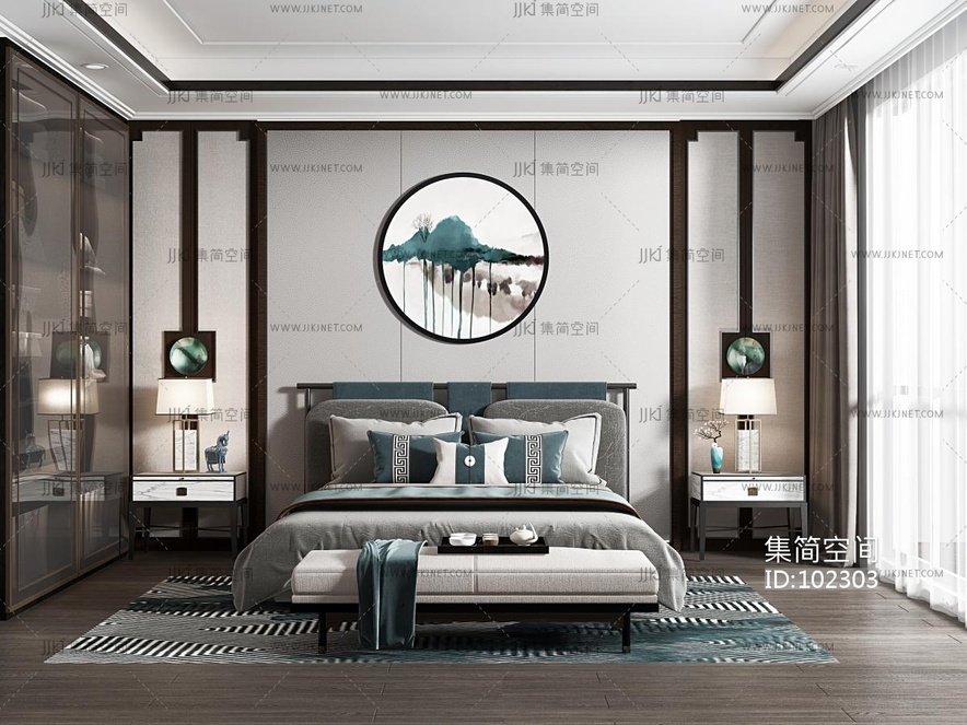 6法式中古家居卧室_主卧_飘窗卧室_高级灰卧室3D模型cr3d模型下载