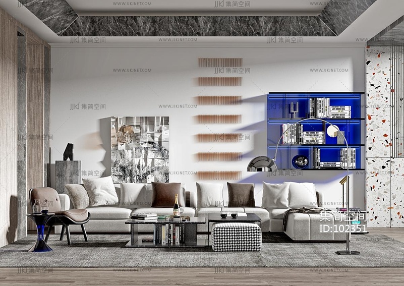 现代简约风格客厅 ,转角沙发茶几组合 3d模型下载 [模型ID:102351]