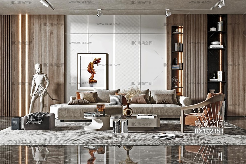 现代简约风格客厅 3d模型下载 [模型ID:102353]
