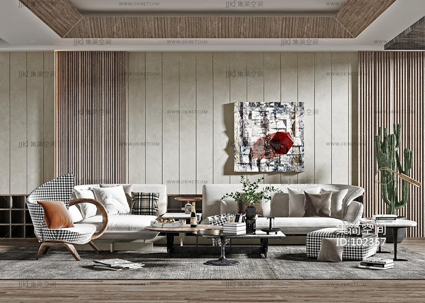 中古风客厅 沙发茶几组合 背景墙3d模型下载