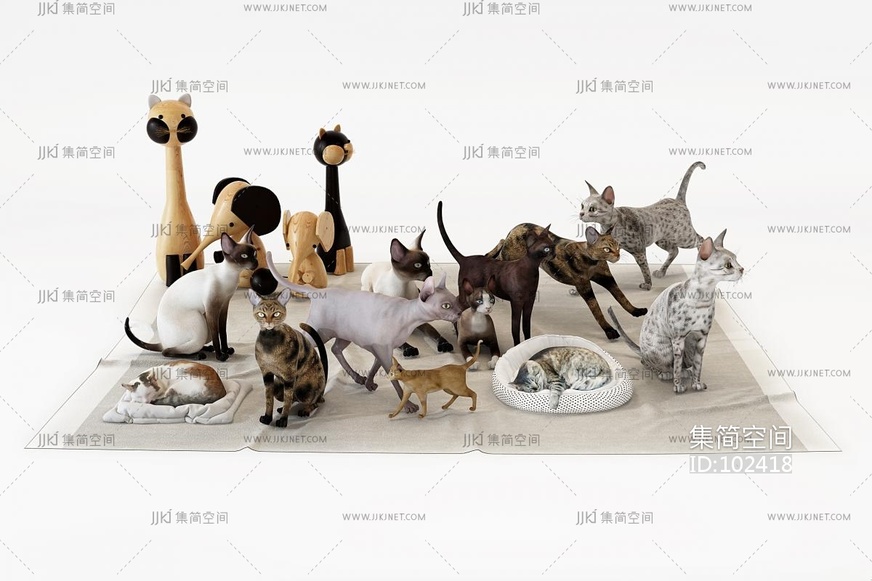 现代宠物狗,宠物猫,动物 3d模型下载 [模型ID:102418]