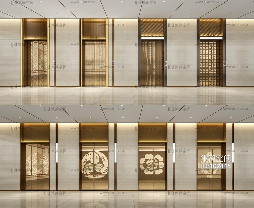 现代金属花纹电梯门, 3d模型下载 [模型ID:102445]