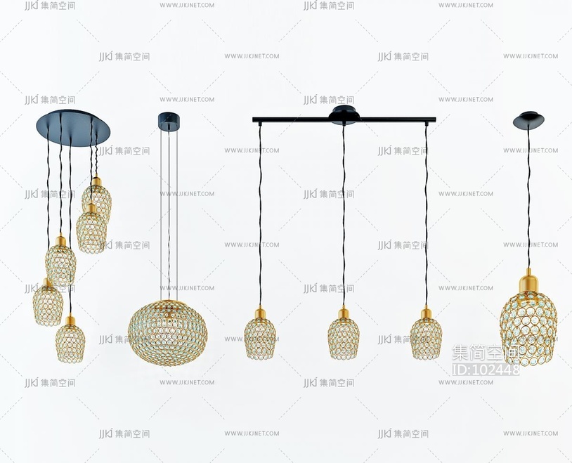 现代金属水晶吊灯组合 3d模型下载 [模型ID:102448]