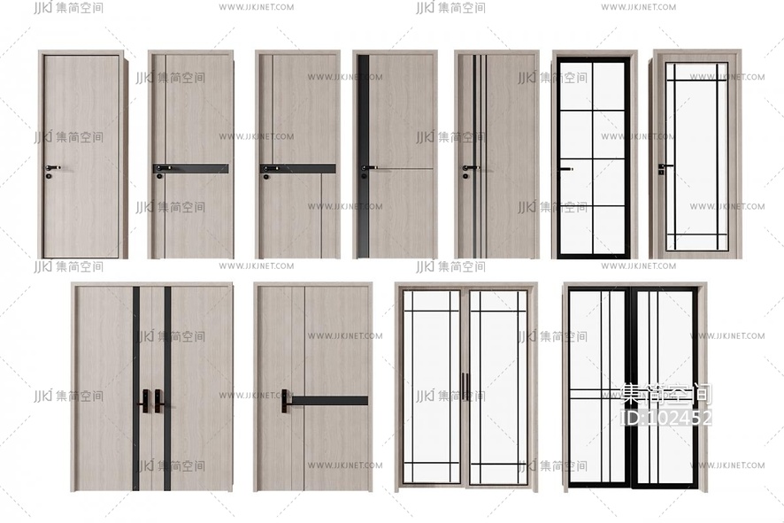 奶油简约双开门_玻璃门_厨房门_阳台门_双开门3D模型3d模型下载