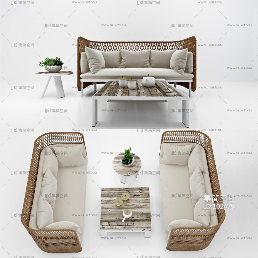 现代户外藤编沙发 3d模型下载 [模型ID:102479]