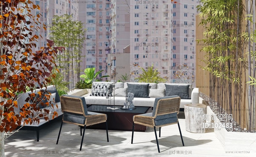 现代户外布艺沙发组合 3d模型下载 [模型ID:102483]