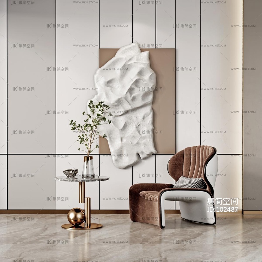 现代单椅墙面装置艺术组合 (1) 3d模型下载 [模型ID:102487]