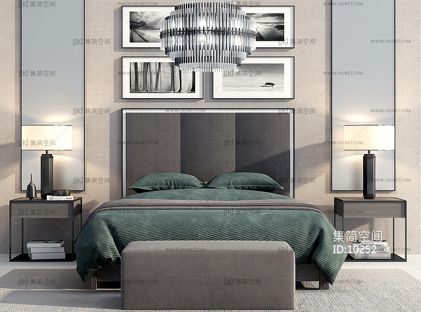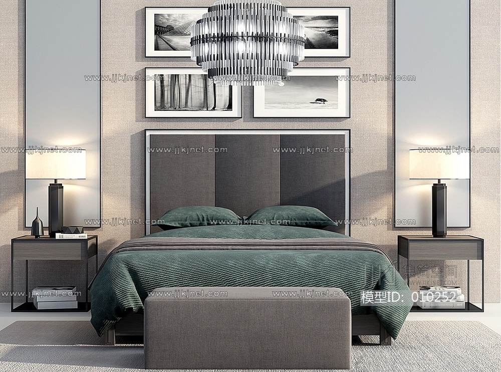 H52-1107现代床组合 3d模型下载 [模型ID:10252]