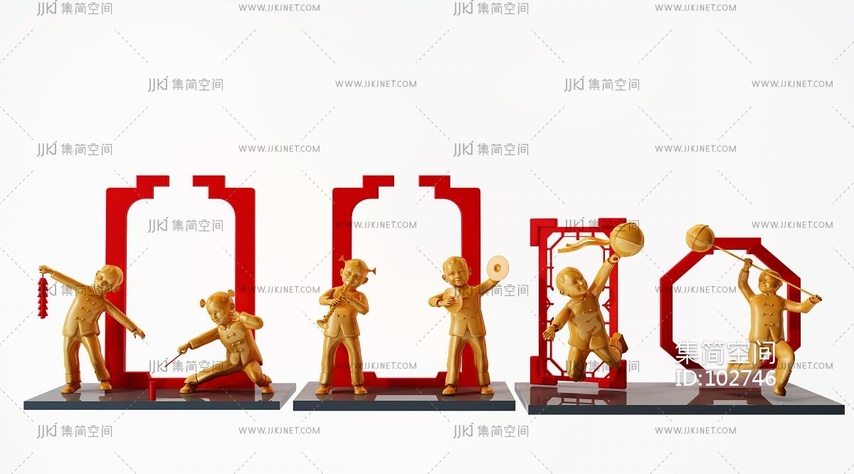 新中式欢度春节儿童雕塑,,雕像 3d模型下载 [模型ID:102746]