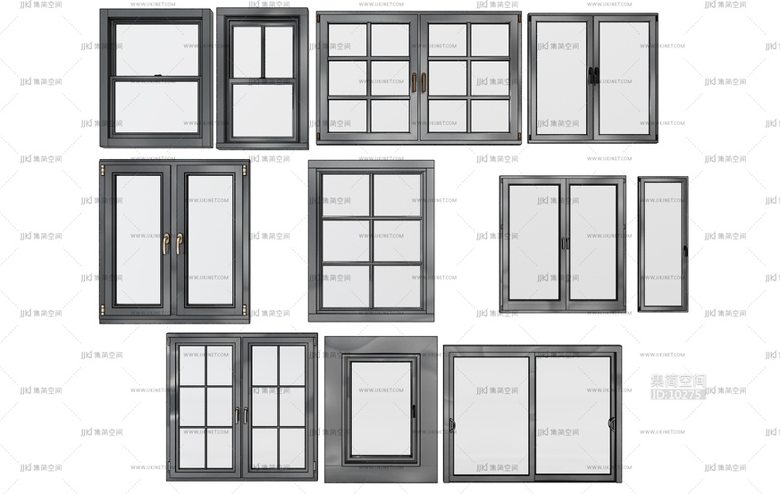 H25-1109现代实木窗户组合 3d模型下载 [模型ID:10275]