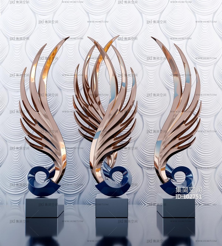 现代翅膀雕塑摆件 3d模型下载 [模型ID:102751]