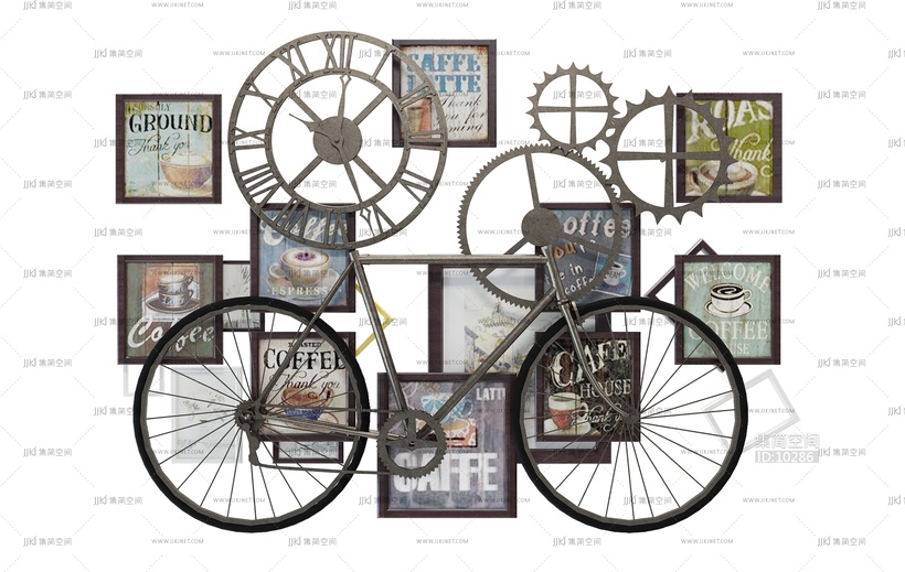 H36-1109工业风墙饰齿轮自行车 3d模型下载 [模型ID:10286]
