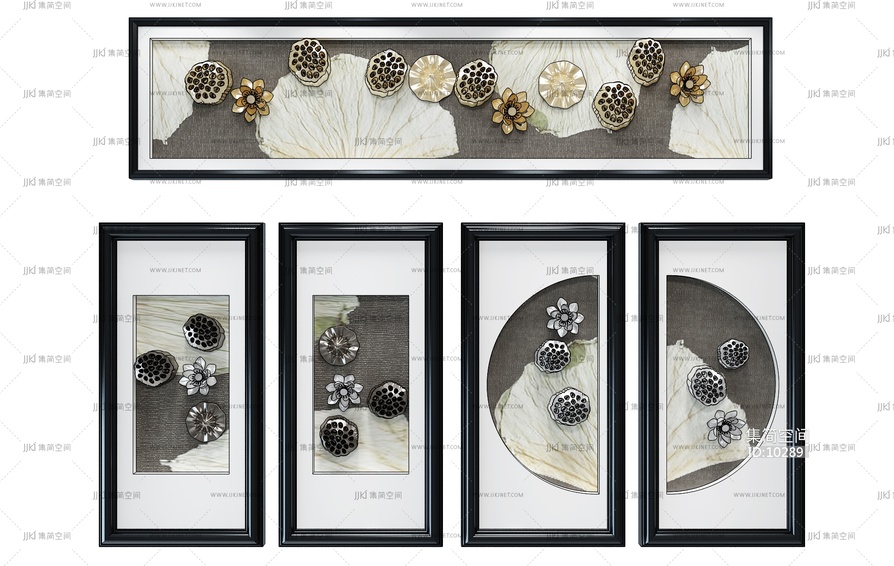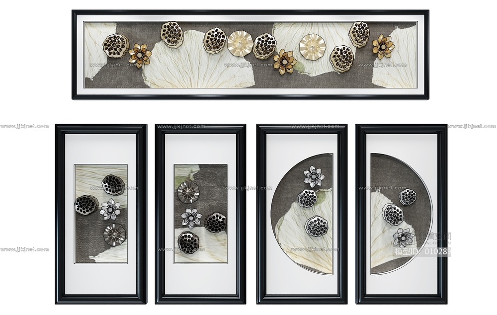 H39-1109新中式立体荷叶莲蓬装饰画组合 3d模型下载 [模型ID:10289]