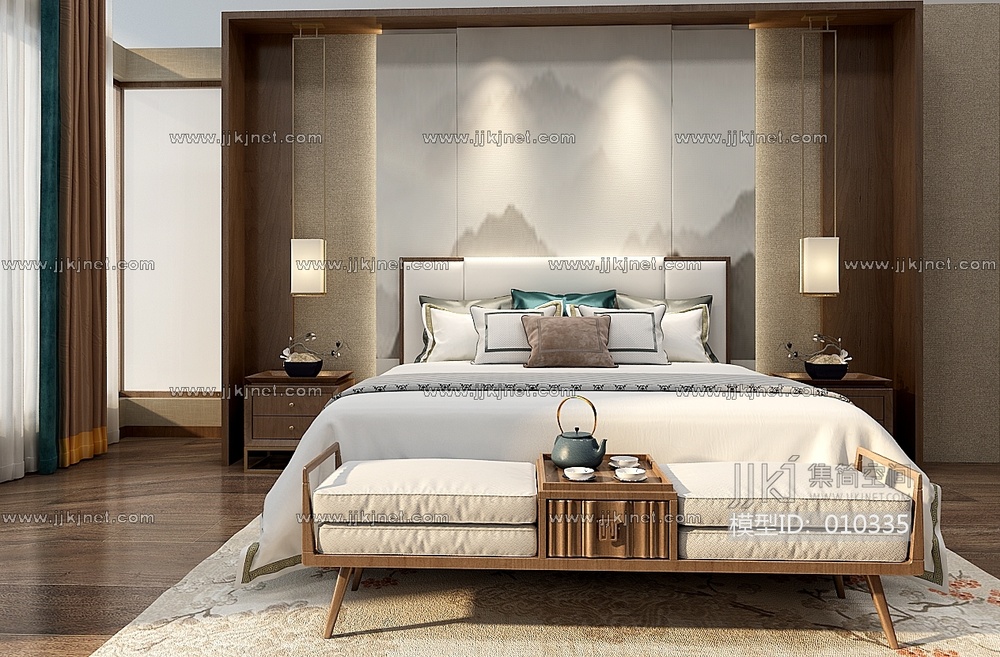 新中式卧室床具组合 3d模型下载 [模型ID:10335]