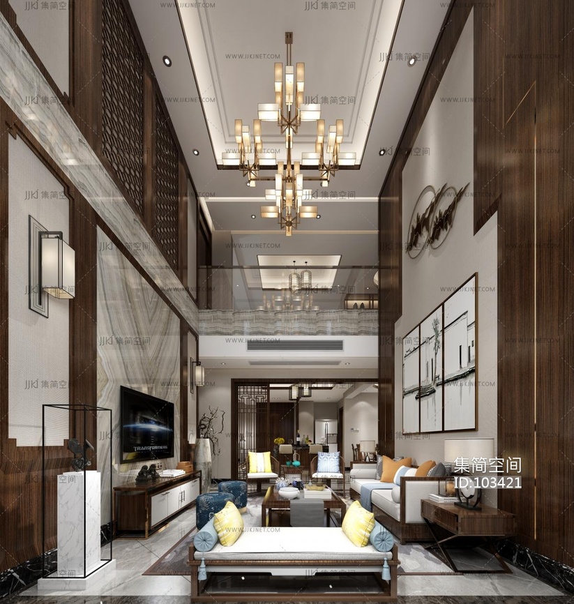 新中式别墅客厅 3d模型下载 [模型ID:103421]