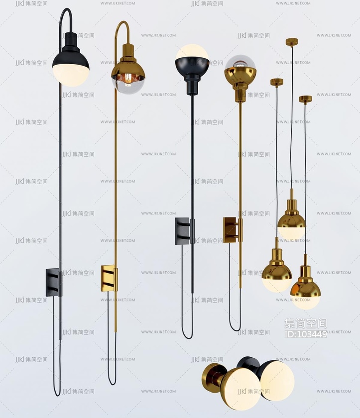 现代金属壁灯吊灯 3d模型下载 [模型ID:103449]