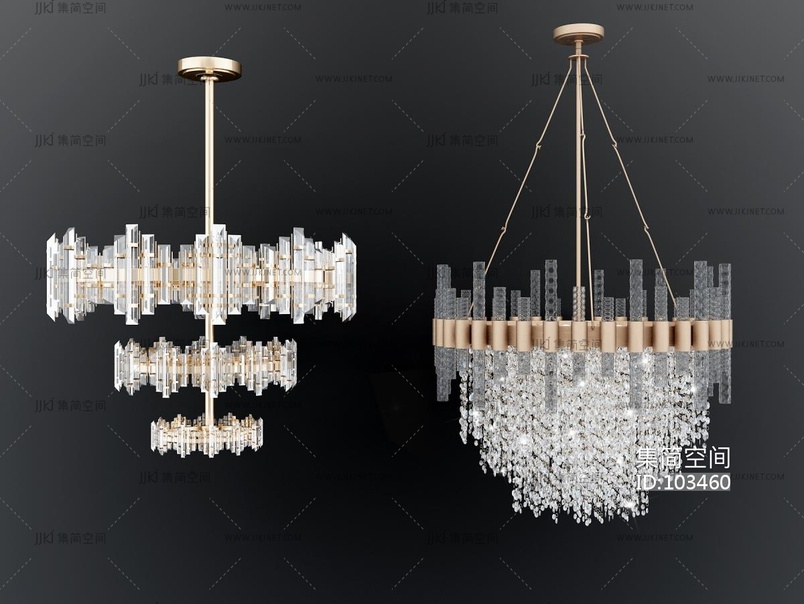 现代轻奢水晶吊灯 3d模型下载 [模型ID:103460]