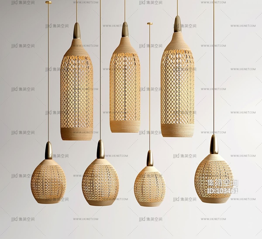 新中式藤编吊灯 3d模型下载 [模型ID:103461]