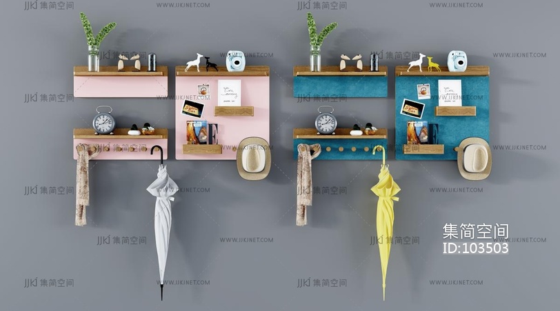 北欧儿童饰品墙饰,置物架及其摆件 3d模型下载 [模型ID:103503]