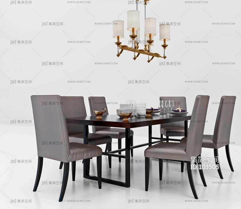 后现代餐桌椅组合 3d模型下载 [模型ID:103505]