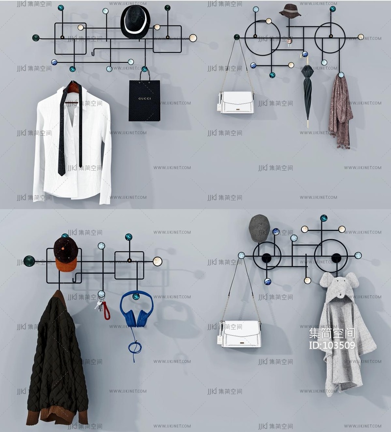 现代简约卫浴浴室洗漱用品装饰挂钩组合 3d模型下载 [模型ID:103509]