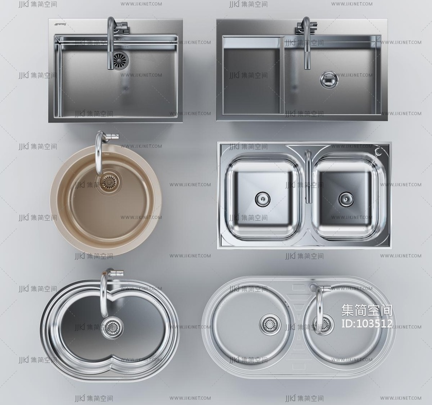 现代不锈钢洗菜盆,厨房台盆 3d模型下载 [模型ID:103512]