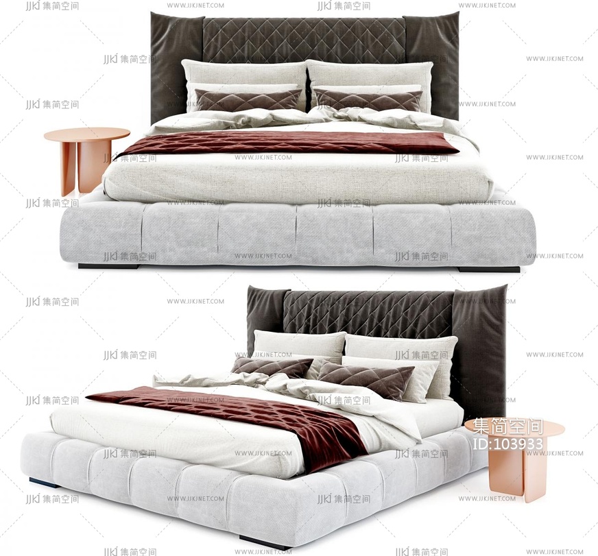 现代布艺双人床,床头柜组合 3d模型下载 [模型ID:103933]