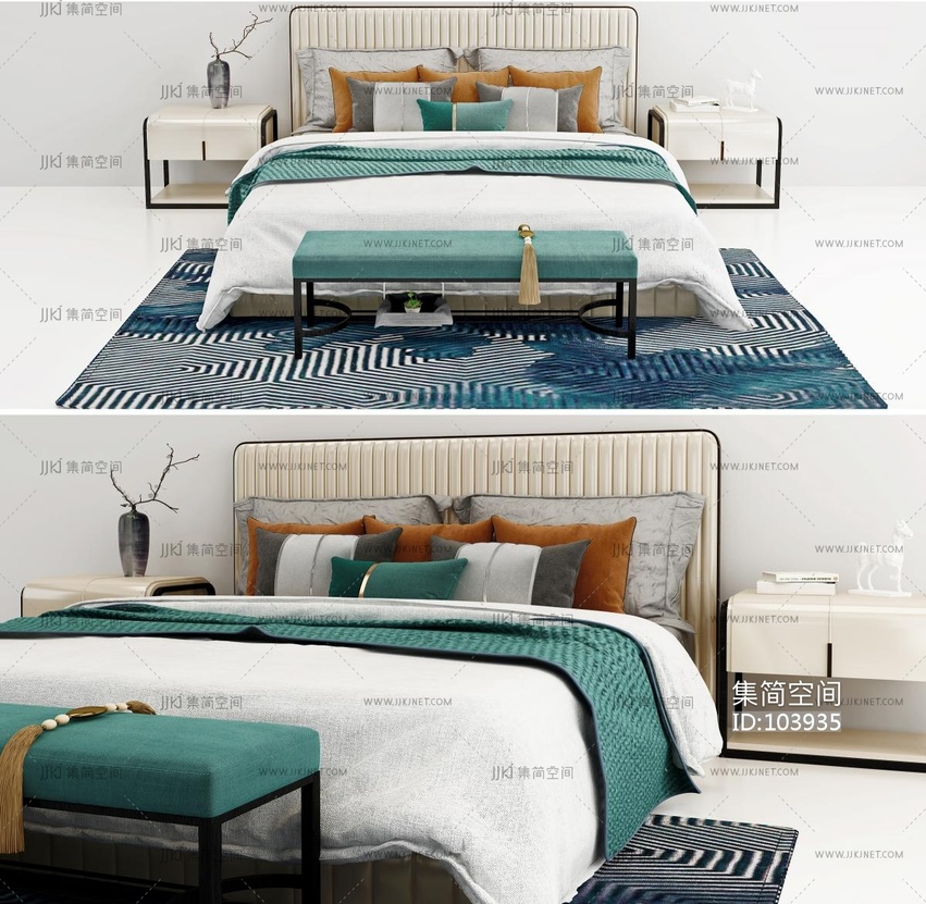 新中式布艺双人床 3d模型下载 [模型ID:103935]