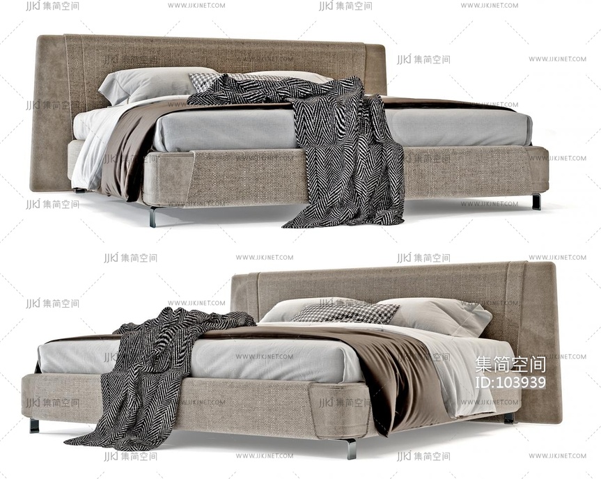 现代布艺双人床,床具 3d模型下载 [模型ID:103939]