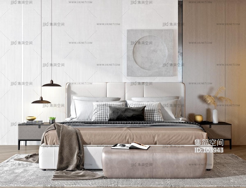 现代布艺双人床 3d模型下载 [模型ID:103943]
