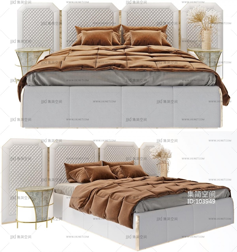 现代布艺双人床,床头柜组合 3d模型下载 [模型ID:103949]