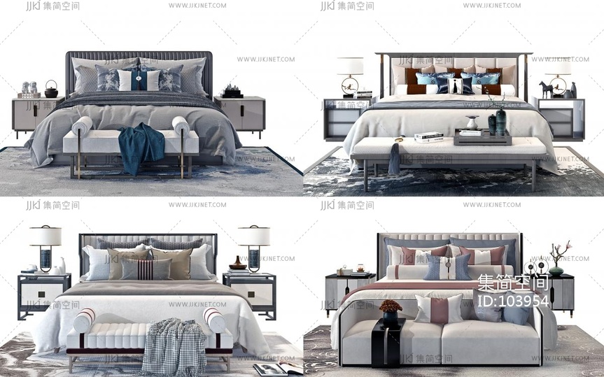 新中式欧式布艺双人床组合 3d模型下载 [模型ID:103954]