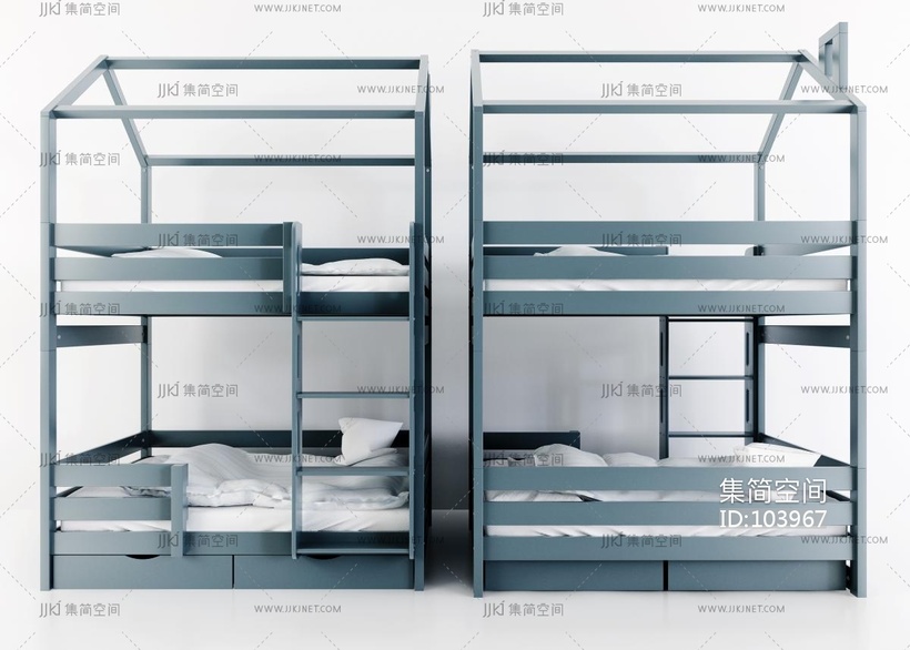 现代极简木架子上下铺双人床 3d模型下载 [模型ID:103967]